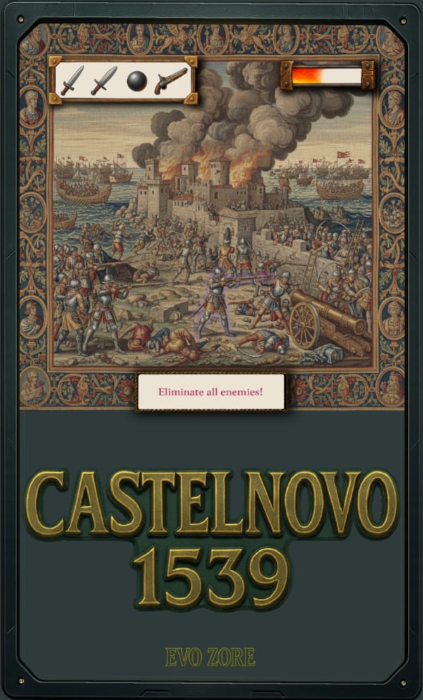 The sixteenth century. The defenders of the fortress of Castelnovo on the Adriatic fight a desperate battle, knowing they are doomed.